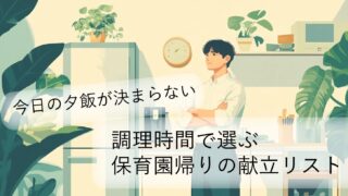 今日の夕飯が決まらない……その悩み、「主菜の調理時間」で解決しませんか?作り置きなし・保育園児2人の共働き家庭が実践する、調理時間別の献立リストと考え方を紹介します。