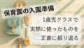私が入園準備で使ったものと、使ってみた感想を記事にまとめています。